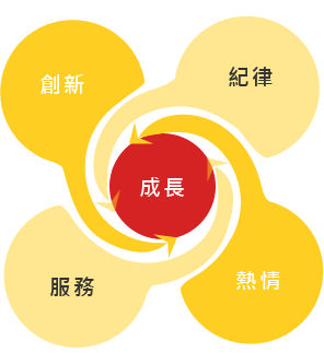 我們期許並教育員工遵循組織紀律,對工作有熱情、對社會人群懷抱熱忱,