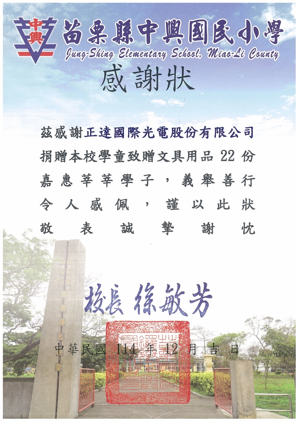 【物資捐贈】苗栗縣中興國民小學學童文具用品